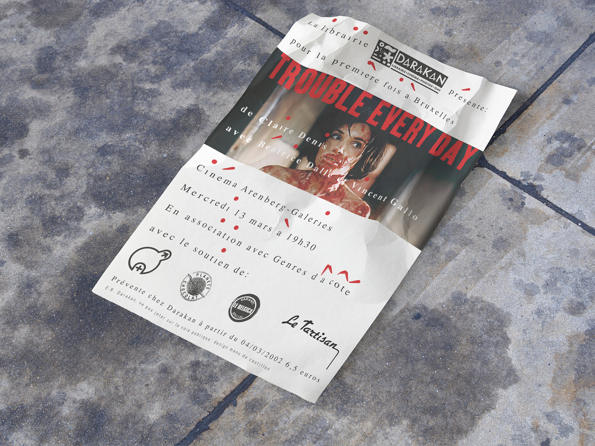 Photo: flyer for a special screening of Claire Denis' "Trouble Every Day" (2002).